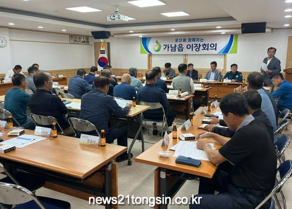 가남읍(읍장 이복환)에서는 10월 7일 가남읍 행정복지센터에서 40개리 마을 이장 및 기관ㆍ단체장이 참석한 가운데 10월 1차 이장회의를 개최하여 시·읍정 홍보 및 당면 현안에 대하여 협의하였다. 또한 가남읍 축제추진위원회(위원장 고광만)에서 이번주 10.12.(토) ~ 13.(일) 개최될 「제4회 여주선비장터축제」 계획안에 대해 발표하고 협의하는 시간을 가졌다.