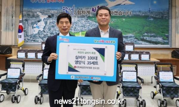 (뉴스21통신) 최우성기자 = 대구 달서구(구청장 이태훈)는 4일 구청 2층 대강당에서 달서구사회복지관협회, ㈜희성전자와 함께 거동불편 어르신 100명에게 지원될 실버카(보행보조기) 전달식을 가졌다.