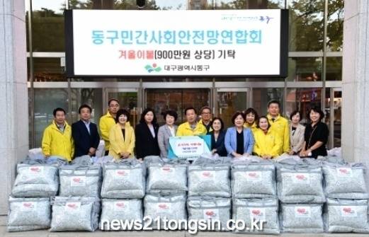 (뉴스21통신) 최우성기자 = 동구민간사회안전망연합회(위원장 조동래)는 지난 4일, 관내 저소득 가정을 위해 겨울이불 110채(900만원 상당)를 동구청에 기탁했다.