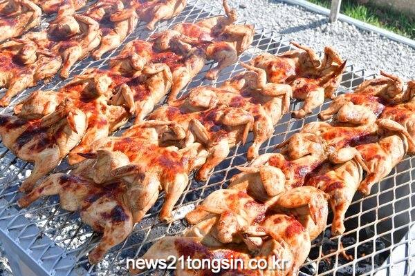 장성지역 업체에서 공수한 양질의 닭을 여러 단계에 걸쳐 장작불로 정성스레 굽는 것이 첫 번째 포인트다. 훈연을 통해 자연스럽게 ‘불맛’이 스며드는 데다 기름기까지 쏙 빠져 담백하다. 여기에 특제 새싹삼 파우더를 입혀 고급스런 풍미를 더했다.화룡점정은 ‘새싹삼 레몬소스’다. 새콤달콤한 맛과 새싹삼 특유의 향이 훈제 치킨 바비큐와 절묘한 조화를 이뤄 폭발적인 반응을 얻고 있다.황룡강 가을꽃축제 현장에서 만난 김모 씨(담양군)는 “2시간 줄 서서 먹었는데 기다린 시간이 아깝지 않았다”며 만족감을 표했다.이틀 연속 황룡강을 찾았다는 박모 씨(광주)는 “첫날 소스가 일찌감치 떨어지는 바람에 치킨만 가져갔는데도 간이 맞아서 잘 먹었다”며 “오늘은 ‘소스 맛’으로 또 한 번 즐기려 한다”고 말했다.‘장성 새싹삼 치킨 바비큐’는 장성군과 더본외식산업개발원, 지역 외식업체, 생산자단체, 지역농협, 장성하이텍고등학교 식품영양학과, 호남대학교 외식조리학과가 공동 참여하고 있는 ‘장성 특화음식 프로젝트’의 일환으로 개발됐다.장성군은 지난 2023년 ㈜더본코리아와 업무협약을 체결한 이래 장성산 농특산물을 이용한 상무대 상생급식 메뉴 30여 종을 개발하는 등 지역 특화음식 활성화를 위해 적극적인 협업을 이어오고 있다.김한종 군수는 “지역 농업인과 외식업 종사자, 외식업 창업을 꿈꾸는 청년들이 장성과 함께 성장할 수 있도록 ‘미식도시’ 완성을 향한 정진을 멈추지 않겠다”면서 “장성 황룡강 가을꽃축제를 많이 찾아 주셔서 다양하게 준비된 지역 먹거리들을 즐겨 주시기 바란다”고 당부했다.‘오색연화’를 주제로 지난 5일 개막식을 가진 장성 황룡강 가을꽃축제는 일요일인 13일까지 열린다.