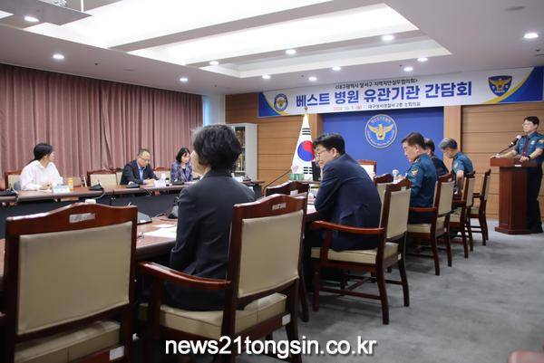 (뉴스21통신) 최우성기자 = 대구성서경찰서에서는 2024년 10월 7일 고위험 정신질환자에 대한 대응 협력체계 구축과 지역사회 치안안정을 위해 달서구 보건소, 정신건강복지센터, 베스트병원 등과 유관기관 간담회를 개최하여, 주요 현안을 공유하고 지원 및 협력사항에 대해 논의하였다.