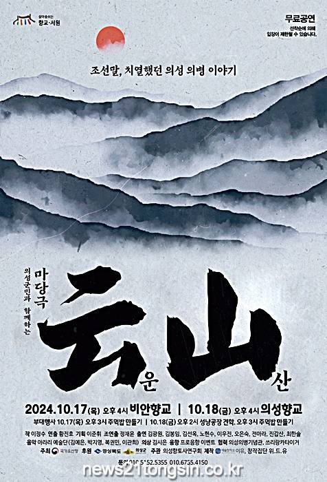 의성군(군수 김주수)이 주최하고(국가유산청, 경상북도 후원) 의성향토사연구회가 주관하는 마당극‘운산云山’이 10월 17일(목) 오후 4시에 비안향교에서, 10월 18일(금) 오후 4시에는 의성향교에서 개최된다.
