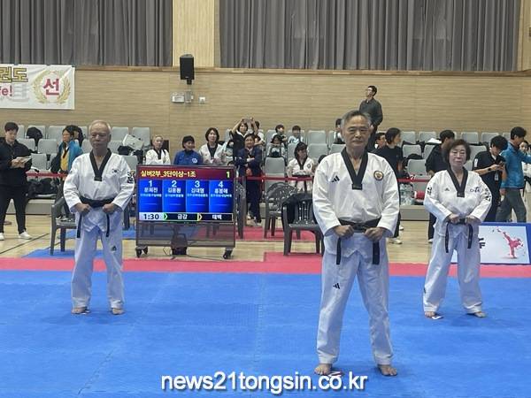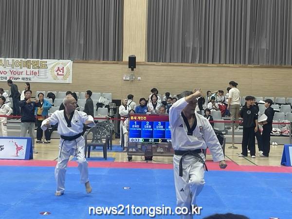 반백의 머리, 움직임이 젊은 시절 같지는 않지만 태권도 수련으로 다져진 실버 유급자, 유단자들이 경기에 임하는 기합소리에는 젊은이들 못지 않은 건강함과 기백이 넘친다.