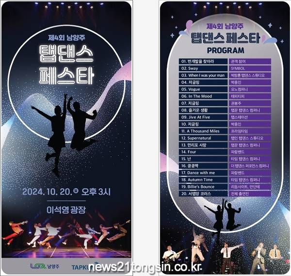 남양주시(시장 주광덕)는 10월 문화의 달을 맞아 오는 20일 오후 3시 이석영광장(남양주시 경춘로 946)에서 ‘남양주 탭 댄스 페스타’공연을 개최한다.
