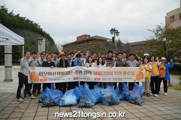 [뉴스21통신 박민창기자] 환경부 산하 국립호남권생물자원관이 10월 15일 영암군 삼호읍 갈마산 인근에서 ‘민관 협력 생물다양성 보전 플로깅’을 진행했다.