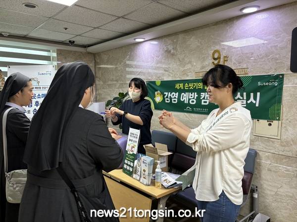 (뉴스21통신) 최우성기자 = 대구 수성구보건소는 지난 15일 '세계 손씻기의 날'을 맞아 감염 예방 캠페인을 펼쳤다.