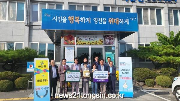 대구 수성구 만촌3동(동장 문해명)은 지난 15일 자매도시인 경북 영천시 화산면과 주민의 자발적 참여로 모은 고향사랑기부금 100만원을 상호 기탁했다.