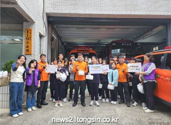 이날 운영단원 15명은 직접 정성 들여 만든 케이크를 수성소방서 119 구조대에 전달하며 소방관들의 노고에 감사하는 마음을 전했다.
