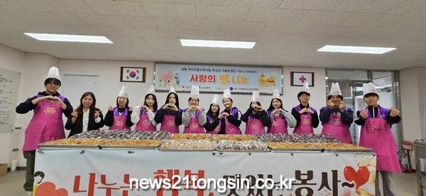 (뉴스21통신) 최우성기자 = 대구 수성구 상동 우리마을 교육나눔 추진위원회(위원장 김정희)는 지난 14일 청소년마을운영단 12명과 대한적십자사 서부봉사관에서 빵 만들기 나눔 봉사를 펼치고 애망원과 양로원에 각각 빵 200개를 전달했다.