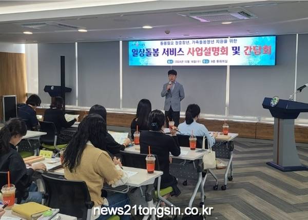 설명회는 ▷일상돌봄서비스 사업대상 및 서비스 안내 ▷가족돌봄청년에 대한 이해 ▷기본 및 특화 서비스 내용 전달 ▷이용자 신청 절차 안내 ▷서비스 대상자 발굴·연계 방안 ▷질의응답 등 현장에서 원활한 업무 추진을 위한 내용을 중심으로 진행되었다.