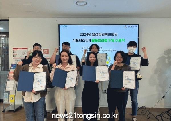 (뉴스21통신) 최우성기자 = 달성청년혁신센터는 지난 10월 16일 달성청년혁신센터 서포터즈 2기 활동에 대한 수료식을 진행했다.