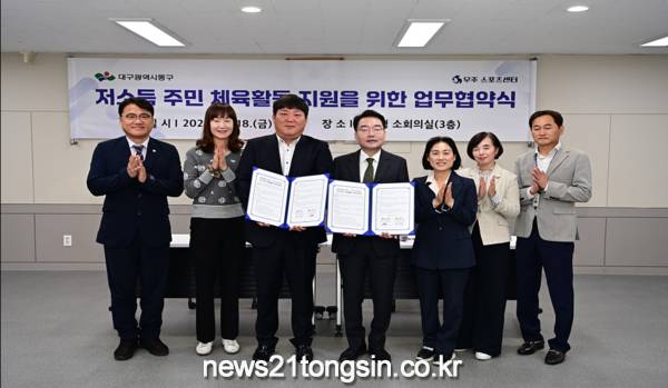 (뉴스21통신) 최우성기자 = 대구 동구청(구청장 윤석준)과 신서동 소재 우주스포츠센터는 지난 18일, 구청에서 저소득주민 체육활동 지원을 위한 업무 협약을 체결했다.
