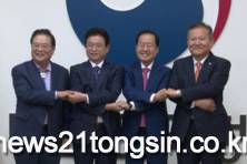 이상민 행정안전부 장관과 우동기 지방시대위원장, 홍준표 대구시장과 이철우 경상북도지사가 손을 맞잡았다.
