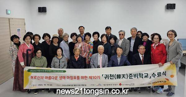 (뉴스21통신) 최우성기자 = 대구 수성구 고산노인복지관(관장 박헌수)은 지난 18일 ’제10기 귀천(歸天)준비학교‘의 전 과정에 참여한 어르신들을 대상으로 수료식을 개최했다.