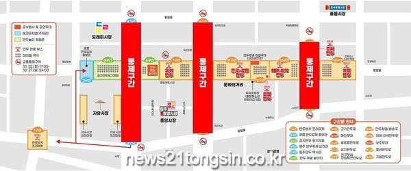 □ 통제 구간은 ▲중앙시장 및 자유시장 일원(원일로 114~중앙시장길 32) ▲KB국민은행 사거리(중평길 2~평원로 45) ▲제일약국 사거리(원일로 70~감영길 51) 이다.□ 10월 25일(금)부터 27일(일)까지 개최되는 ‘2024원주만두축제’의 주요 무대, 판매 부스 등의 설치를 위해 축제에 앞서 교통 통제를 미리 실시함으로써 보행자 및 차량 안전사고를 사전에 방지한다는 방침이다.□ 또한 해당 구간으로 진입하는 교통 신호기 제어를 통해 원활한 교통 흐름을 유도하고 사고를 예방할 계획이다.□ 교통 통제 기간 동안은 해당 구간으로의 진입이 불가하므로 원일로 및 평원로로 우회해야 하며, 운송 차량 등은 통제 구간 외 진입로를 이용해야 한다.□ 시는 교통 통제 구간(3개소)에 만두왕 빅쇼, 개·폐막식, 김치만두경연대회 등이 펼쳐지는 메인 및 보조무대와 10개 테마의 100가지 이상의 만두를 판매하는 만두 판매부스 50여 개가 들어선다.□ 특히 축제 방문객의 편의성 증진을 위해 ▲전통시장 공영주차장 ▲시장활성화구역 주차장 ▲자유시장 지하주차장 ▲문화의거리 공영주차장 ▲(구)학성초 운동장 ▲보건소 주차장 ▲원주천 둔치 주차장 ▲성지병원 1~5 주차장 ▲(구)원주역 공영주차장 ▲원주 축협하나로마트 야외주차장 등 임시주차장 10개소를 운영한다.□ 원강수 원주시장은 “평소에도 교통량이 많고 혼잡한 지역으로 이번 통제로 인한 많은 불편이 따를 것으로 예상되지만, 지역 경제와 원도심 활성화를 위한 ‘2024 원주만두축제’가 원주시민의 이해와 배려로 안전하게 개최될 수 있도록 적극적인 협조를 부탁드린다.”고 전했다.□ 한편 ‘2024 원주만두축제’는 오는 10월 25일(금)부터 27일(일)까지 3일간 중앙동 전통시장 및 문화의 거리, 지하상가 일원에서 50여 개의 만두부스, 만두왕빅쇼, 연예인 공연, 김치만두빚기체험 등 다채로운 프로그램으로 개최된다.