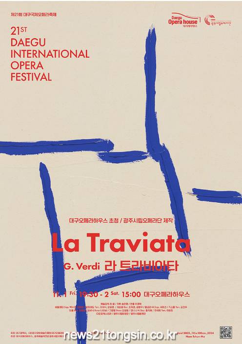 (뉴스21통신) 최우성기자 = 대구오페라하우스는 ‘제21회 대구국제오페라축제’의 다섯 번째 메인 프로그램으로 광주시립오페라단이 제작한 ‘라 트라비아타(La Traviata)’를 오는 11월 1일(금)과 2일(토)에 대구오페라하우스에서 선보인다.