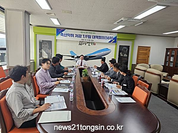 군위군 축산악취 T/F팀(위원장 전성무)은 지난 17일 군위군청 제1회의실에서 축산악취 저감 T/F팀 제14차 회의를 개최했다.