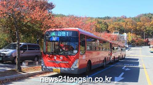 (뉴스21통신) 최우성기자 = 팔공산 첫 단풍이 10월 18일(금)에 시작해 10월 29일(화)에 절정일 것으로 관측되는 등 팔공산 순환도로 방문객이 크게 증가할 것으로 예상되므로 차내 혼잡도 완화를 위해 10월 마지막 주, 11월 첫째 주 토·일요일에 동화사 방면의 주요 노선인 급행1번 노선을 기존 20대에서 22대로 2대 증회운행(매년 시행)한다.