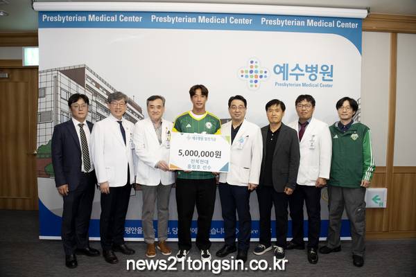 전북특별자치도 전주예수병원(병원장 심충식)은 본원 설대위 기념동 7층에서 전북현대모터스 소속 홍정호 선수가 500만 원을 병원 발전기금으로 기탁했다고 25일 밝혔다.