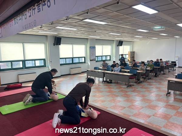 교육 내용으로는, 심정지 환자 발견 시 신속한 대처 방법 및 심폐소생술 교육, 마네킹을 활용한 가슴압밥 소생술 실습, 기도폐쇄 환자 발견 시 하임리히법 교육 및 실습 등 실제 상황에서 대처할 수 있는 행동요령 중심의 실습교육 위주로 진행됐다.