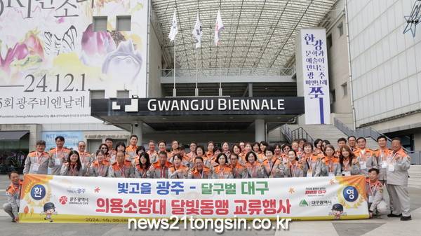 광주광역시소방안전본부는 광주의용소방대연합회(회장 강형선)와 대구의용소방대연합회(회장 박명옥)가 29일 광주비엔날레 등 광주시 일원에서 ‘달빛동맹 교류행사’를 개최했다고 밝혔다.