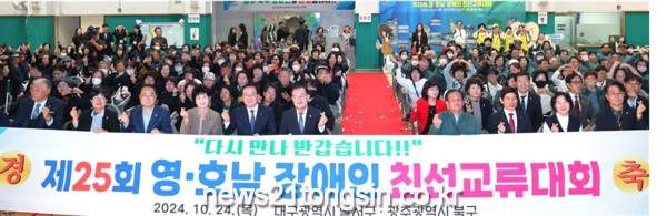(뉴스21통신) 최우성기자 = 대구 달서구(구청장 이태훈)가 지난 24일 달구벌재활스포츠센터에서 광주 북구와 대구 달서구 두 지역의 장애인, 자원봉사자 등 360여 명이 함께한 『제25회 영․호남 장애인 친선교류대회』를 진행했다.