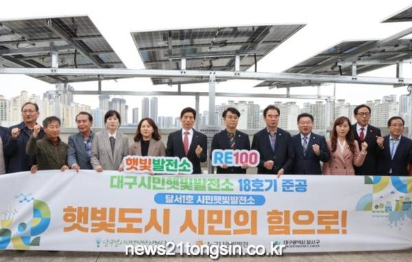 (뉴스21통신) 최우성기자 = 대구 달서구(구청장 이태훈)가 25일 성당동 행정복지센터에서 시민과 함께 추진한 “대구시민햇빛발전소 달서1호”준공을 기념하기 위해 준공식을 가졌다.