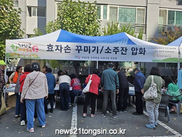 (뉴스21통신) 최우성기자 = 대구 수성구 지산1동 우리마을 교육나눔 추진위원회(추진위원장 김은실)는 지난 26일에 열린‘지산골 함께해효(孝) 축제’에서 효자손 꾸미기와 압화 소주잔 만들기 프로그램을 진행했다.