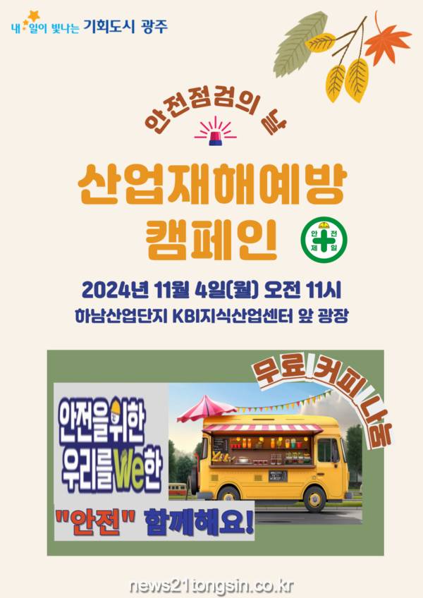 광주광역시는 오는 4일 오전 11시부터 오후 1시까지 하남산단 내 KBI지식산업센터 앞 광장에서 하남산업단지 내 사업체 종사자를 대상으로 산업재해예방 안전 캠페인을 진행한다.