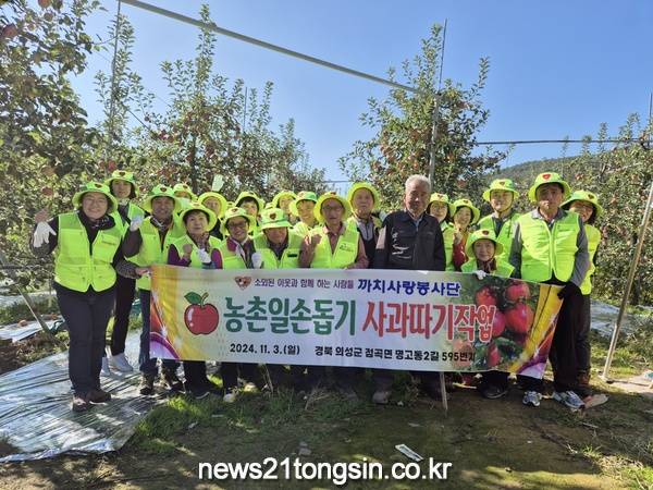 (뉴스21통신) 최우성기자 = 까치사랑봉사단(단장 이송규)은 11월 3일(일) 의성군 점곡면 소재의 과수원을 찾아 사과따기 농촌일손돕기를 진행했다.