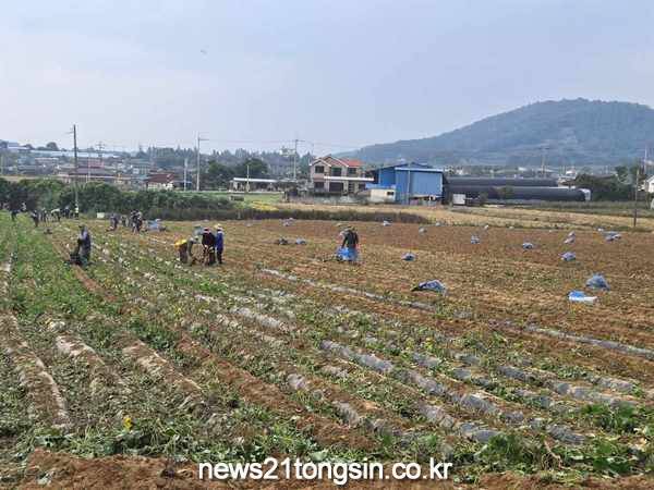 영암군(군수 우승희) 곳곳 들녘에서 막바지 황토고구마 막바지 수확이 한창이다.