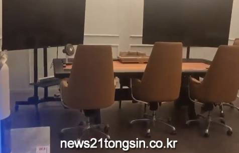 호텔처럼 꾸며진 사무실 안쪽에는 곳곳에 커다란 모니터가 놓여 있다.