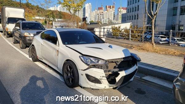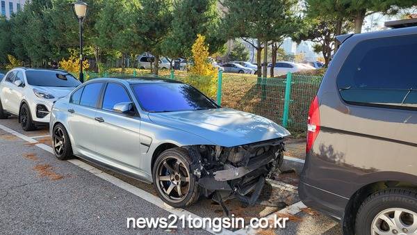 경기북부경찰청 옆 노상주차장에 사고로 부서진 차량들이 한 달이 넘게 방치되어 있어 시민들의 눈살을 찌푸리게 하고 있다.