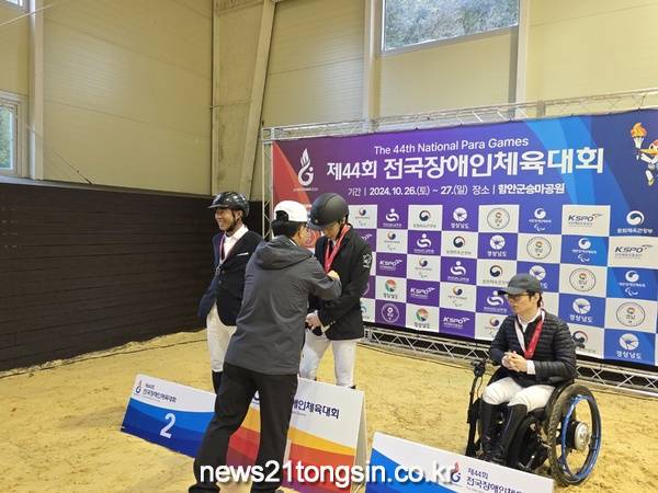10월27일 경상남도 함안승마공원에서 펼쳐진 제44회 전국장애인체육대회 승마 종목에 참가한 허준호(21, 경기 김포, 명지대) 선수가 그레이드3에서 압도적인 기록으로 금메달을 획득하며 승마 종목이 편입된 이후 최초로 대회 3연패의 기록을 달성했다. 마명 Sir 오제이와 호흡을 맞춘 허준호 선수는 전체 최고점을 받는 독보적 경기를 선보였다.