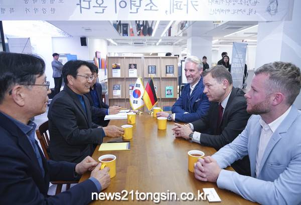 강기정 시장과 게오르크 대사는 이날 오후 힌츠페터국제보도상 시상식 참석에 앞서 동구 전일빌딩245 1층 ‘소년이 온다 북카페’에서 면담, 광주-독일 간 교류방안, 80년 5월의 진실을 전 세계에 알린 언론인 힌츠페터의 정신을 되새겼다.