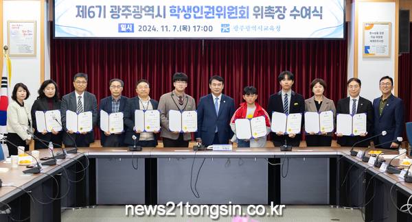 광주시교육청은 지난 7일 중회의실에서 ‘제6기 광주광역시 학생인권위원’에 대해 위촉장을 수여했다.