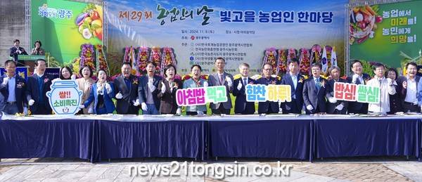 광주광역시(시장 강기정)는 농업인의 날(11월 11일)을 기념해 9일 시청 야외음악당에서 ‘제29회 농업인의 날-빛고을 농업인 한마당’을 개최했다.