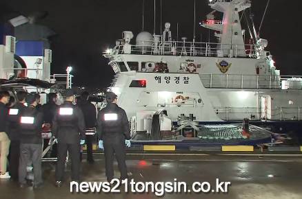 자정을 넘긴 시각, 부둣가로 해경 함정이 들어온다.