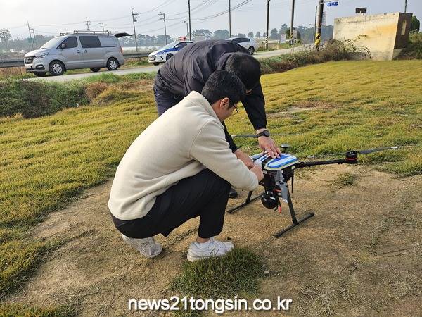 전북특별자치도 정읍경찰서는 수확철 농산물 재배지·보관창고, 주요 등산로 등 범죄예방을 위한 드론 순찰을 하고 있다.