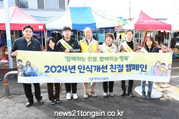 여주도시공사(이하 ‘공사’)는 지난 15일, ESG 경영 실천과 지역 상생발전을 위해 여주 세종시장에서 ‘함께하는 친절, 함께하는 행복’ 인식 개선 친절 캠페인을 실시했다고 밝혔다.