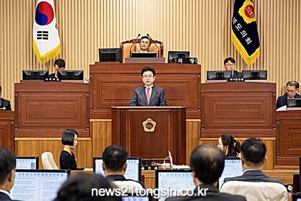 이철우 도지사는 21일 경상북도의회 본회의장에서 진행한 2025년 시정연설에서 “어려운 경제상황과 재정 여건이지만 경북의 새로운 성장 동력을 발굴하기 위해 뼈를 깎는 변화와 중단 없는 미래투자가 필요한 시점이다”고 강조했다. 또한, “2025년 도정은 ‘민생’, ‘행복’, ‘도약’의 3대 키워드에 주안점을 둘 것이다”고 밝혔다.