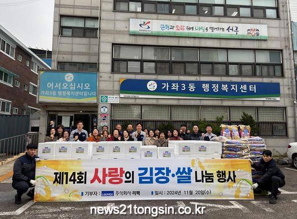 가좌동에 위치한 ㈜리팩(대표 이상건)은 지난 20일(수)에 가좌3동 행정복지센터(동장 김성주)에 김치(10kg) 180박스와 양곡(10kg) 120포를 전달하였다.