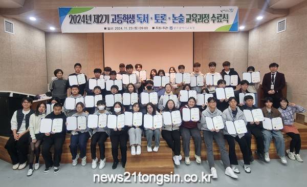 광주시교육청은 지난 23일 광덕고등학교 덕린관에서 ‘제2기 고등학생 독서·토론·논술 교육과정 수료식’을 개최했다.