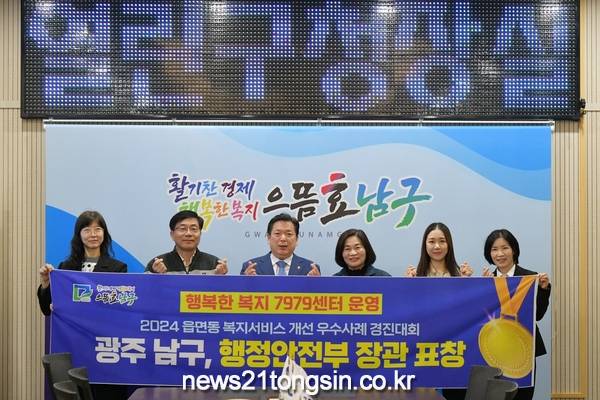 남구는 25일 “이번 경진대회에서 광주에서는 유일하게 행복한 복지 7979센터 사업이 복지 분야 우수사례에 이름을 올렸다”면서 “행안부 장관 표창과 함께 특별교부세 2,200만원을 받는다”고 밝혔다.