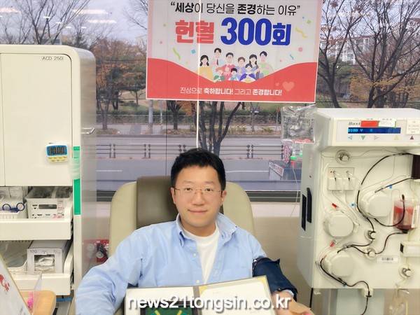 김 주무관은 광주진흥고등학교에 재학 중이던 지난 2006년 7월 학교를 찾은 헌혈 버스에서 헌혈한 것을 시작으로 총 300회 참여했다. 채혈량은 약 150ℓ로, 이는 성인 30명(체중 70㎏ 기준)의 혈액량과 같다.
