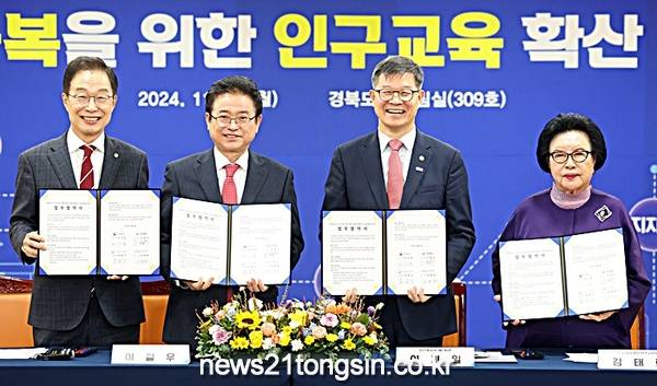 경북도는 25일 경북도청에서 보건복지부, 경상북도교육청, (사)인구와 미래 정책연구원 등과 함께 ‘경상북도 인구 위기 대응 역량 강화 및 경북 특색형 인구교육 확산을 위한 업무협약’을 체결했다.