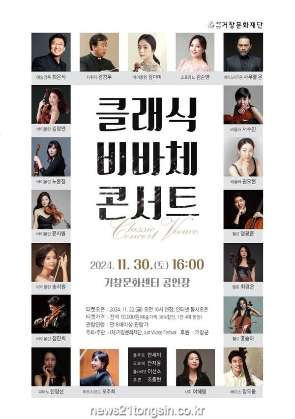 (재)거창문화재단은 오는 30일 오후 4시에 거창문화센터 공연장에서 ‘2024 클래식 비바체 콘서트’를 연다고 26일 전했다.