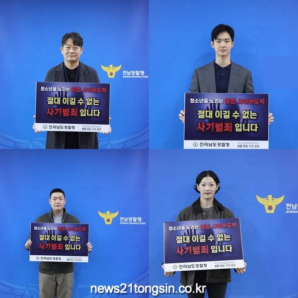 [뉴스21통신 박민창기자] 전라남도경찰청이 배우 조성하, 장동윤, 김민호, 이엘과 함께 청소년 불법 사이버 도박 근절을 위한 홍보 메시지 영상을 제작하고 배포해 주목받고 있다.