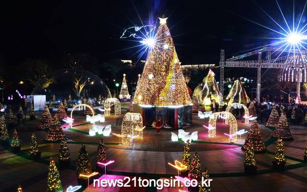 ‘2024 함평 겨울밤 빛축제’는 단순한 빛 장식을 넘어 빛과 예술이 어우러진 대형 아트 공간으로 기획됐다. 축제의 중심인 엑스포공원 중앙광장에서는 매일 이이남 작가의 미디어 아트 작품이 전광판을 통해 상영되며, 대형 크리스마스트리와 국화 조형물, 다채로운 경관 조명이 공원을 더욱 빛낸다.