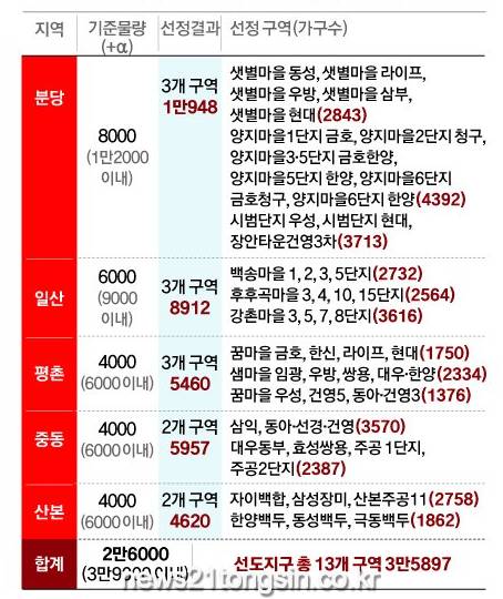 이들 2개 구역을 포함하면 분당은 총 4개 구역 1만 2천55가구, 일산은 4개 구역 9천174가구로 늘어난다.